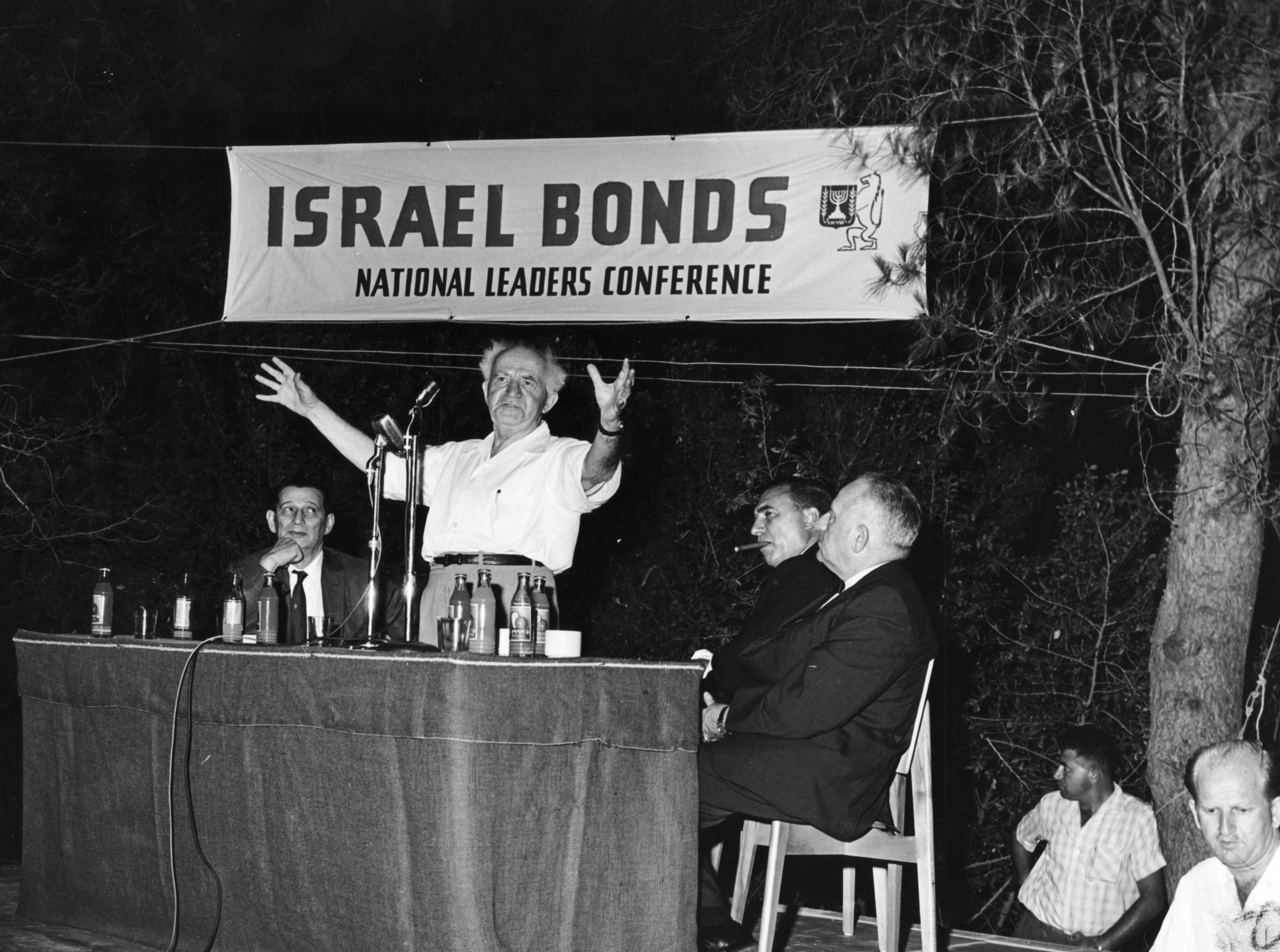 Prime Minister David Ben-Gurion warmly welcomed an early Bonds leadership to Israel.
