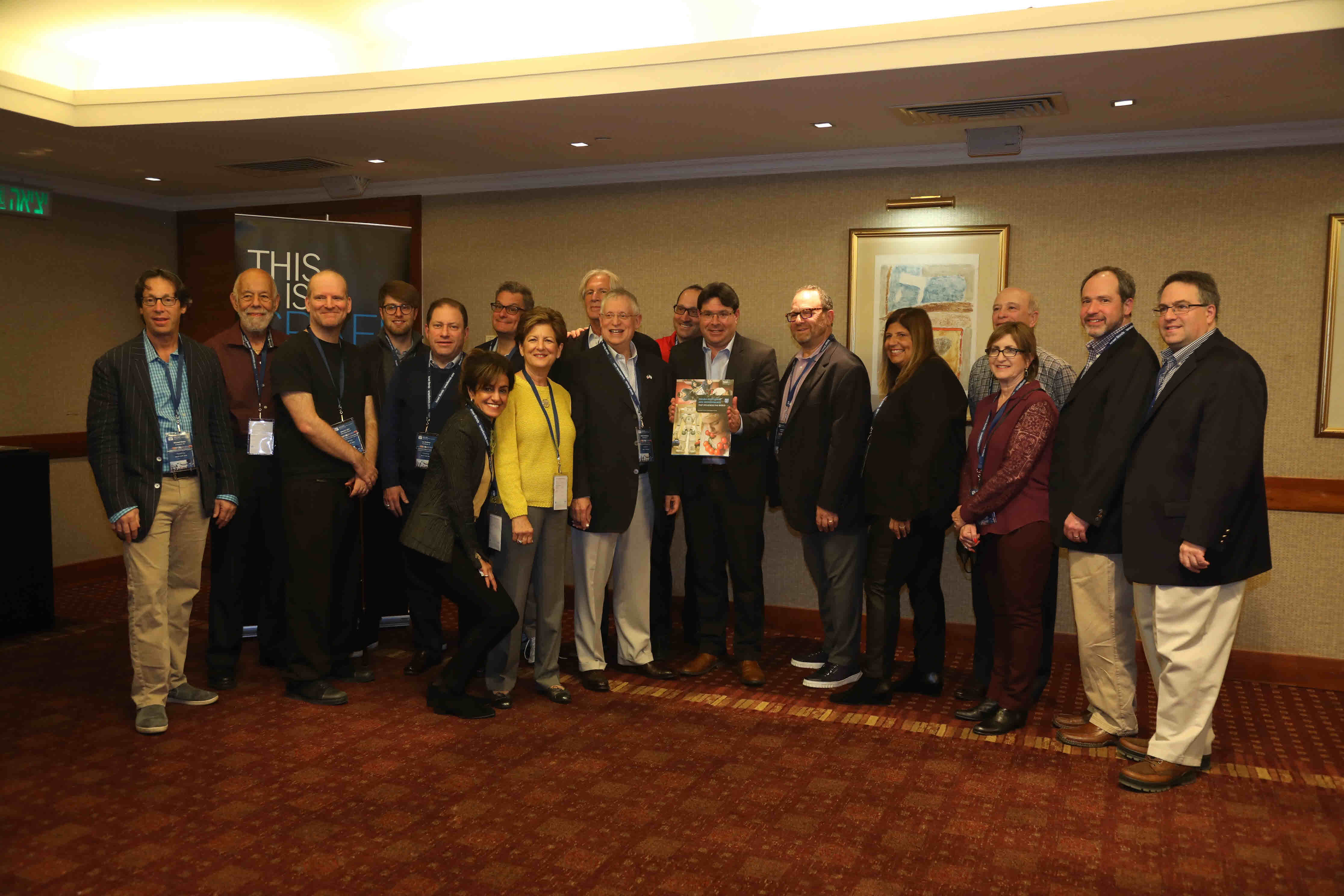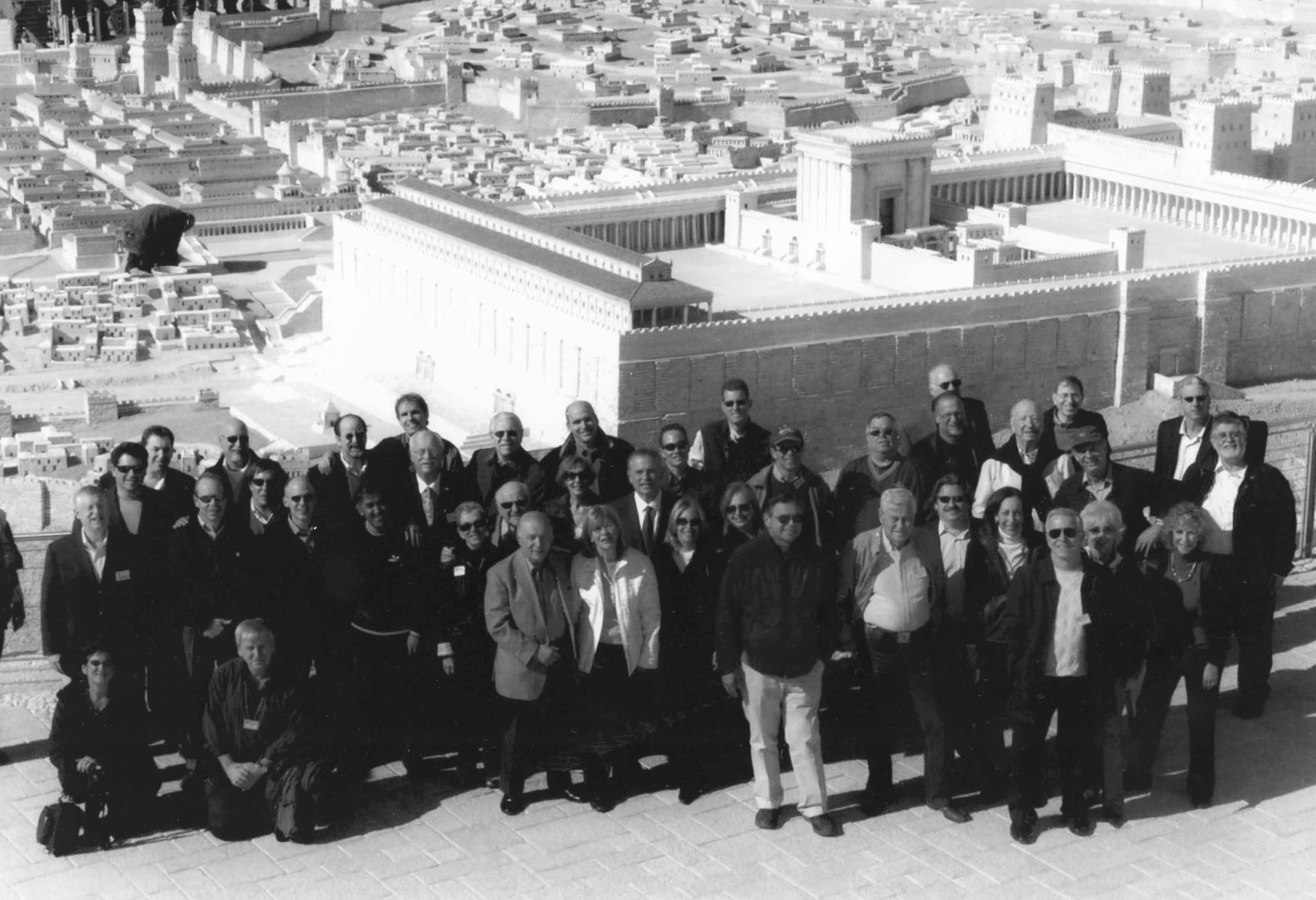 Task force delegates posed for a group photo in front of large scale model of the Second Temple.