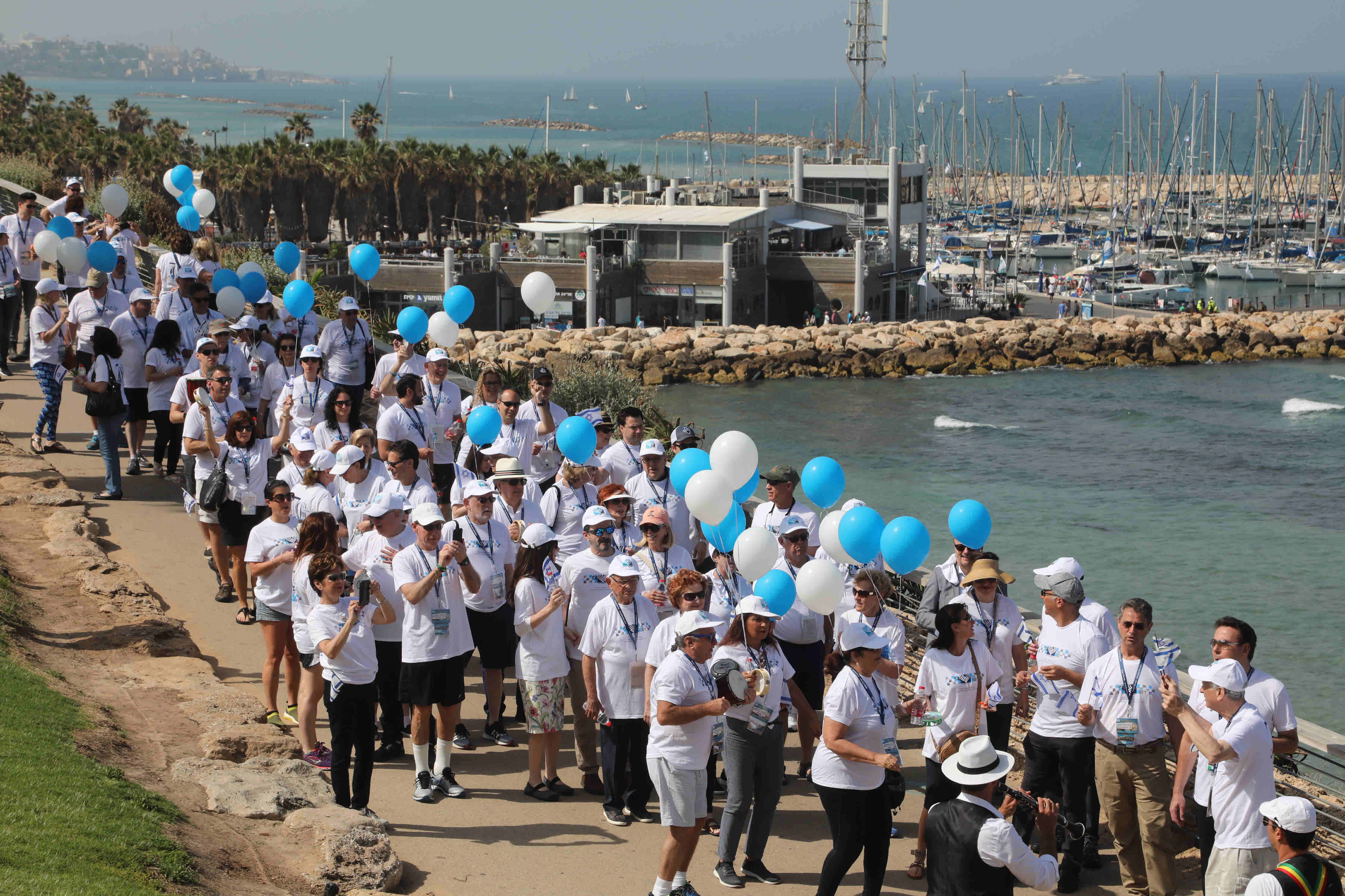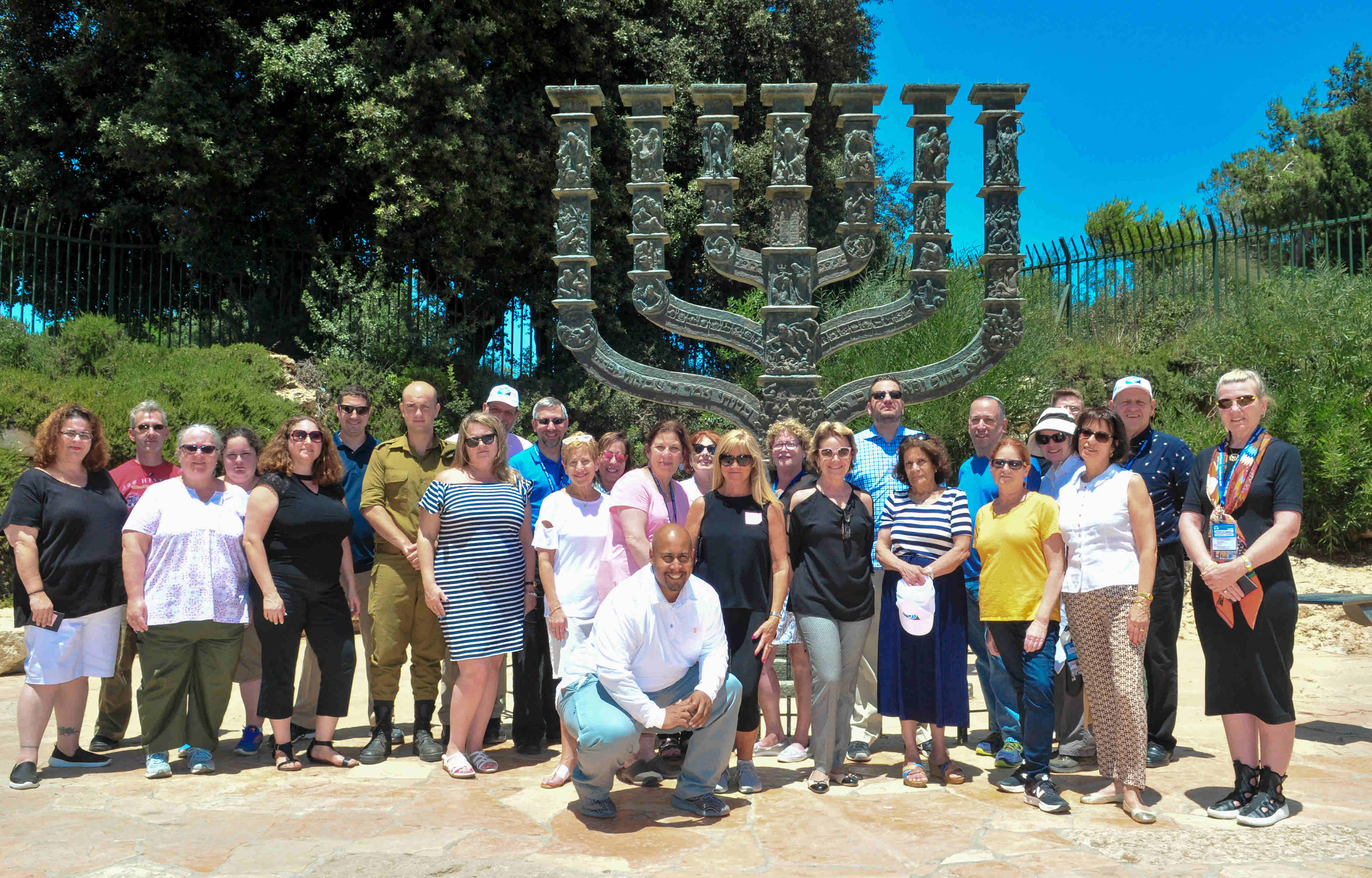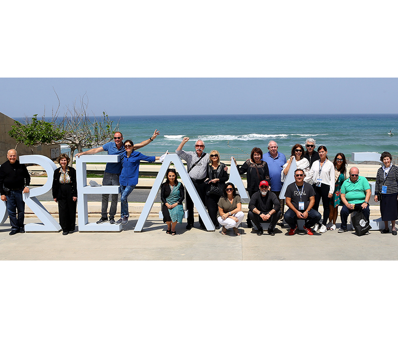 Delegates from Europe and Latin America enjoyed a photo op along the Mediterranean during the 2019 international delegation. (Photo: Yossi Zamir)