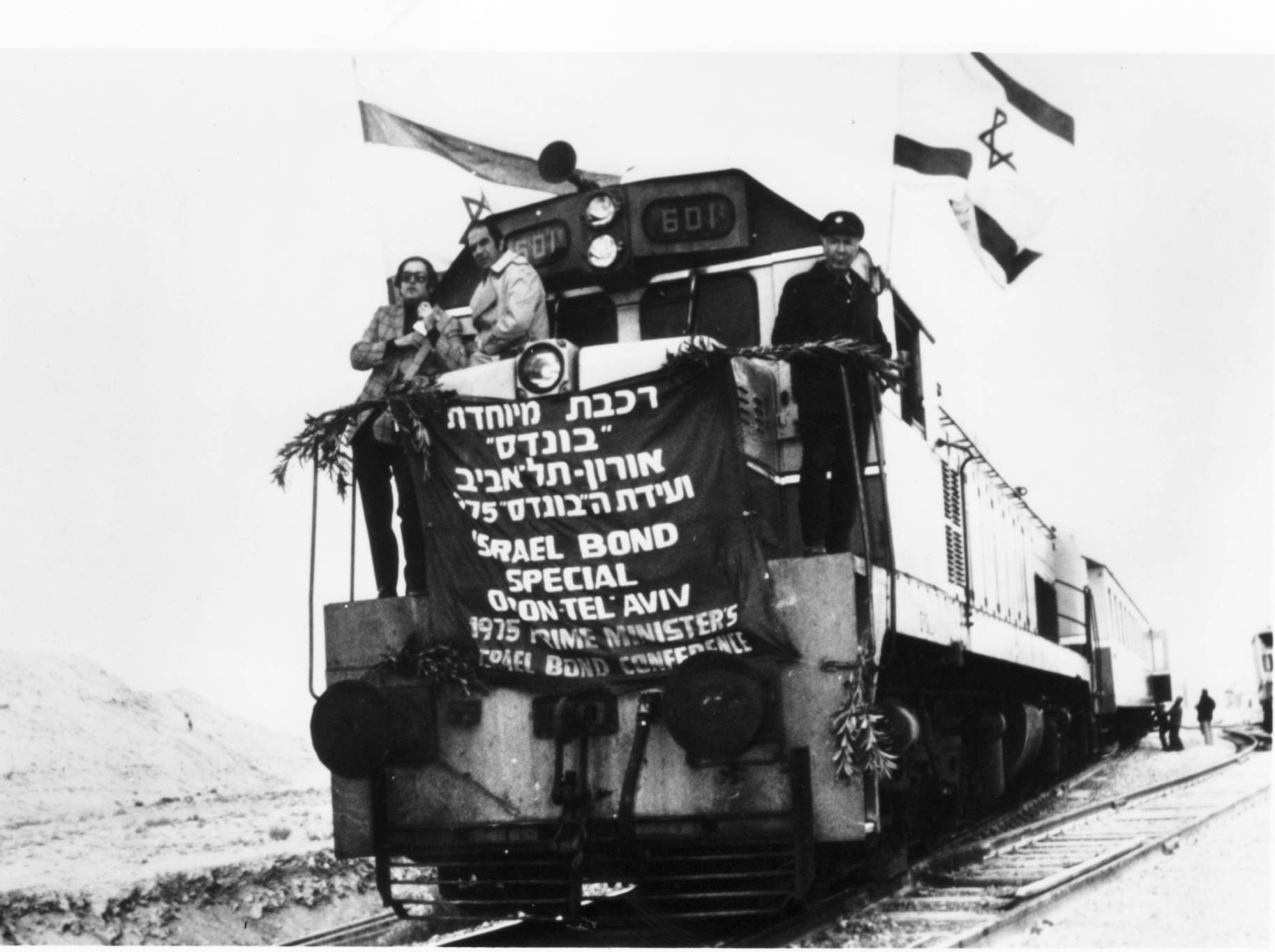 Participants in a 1975 delegation to Israel enjoyed the view from the Israel Bonds Special.