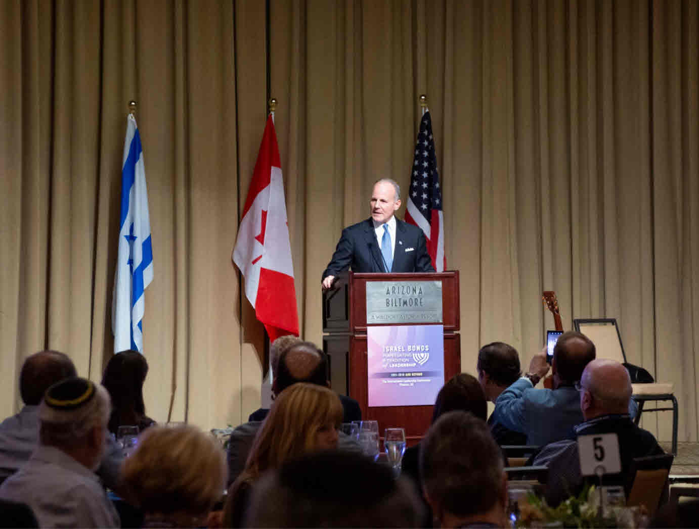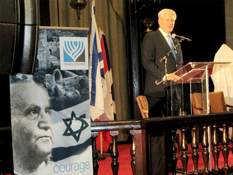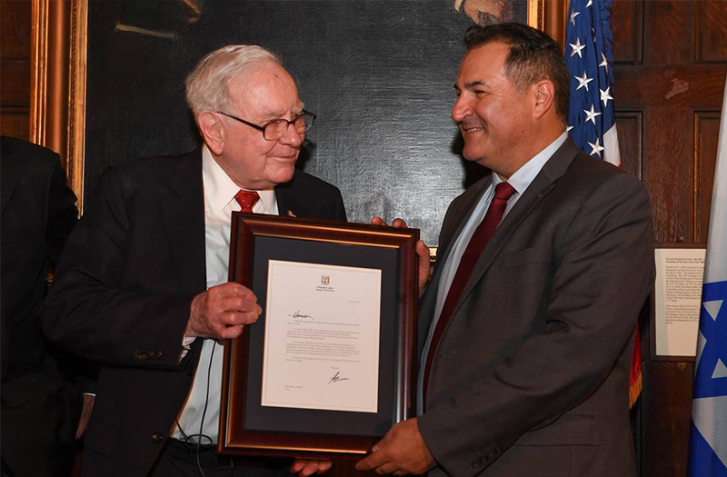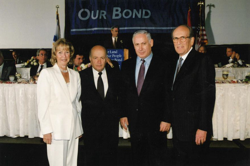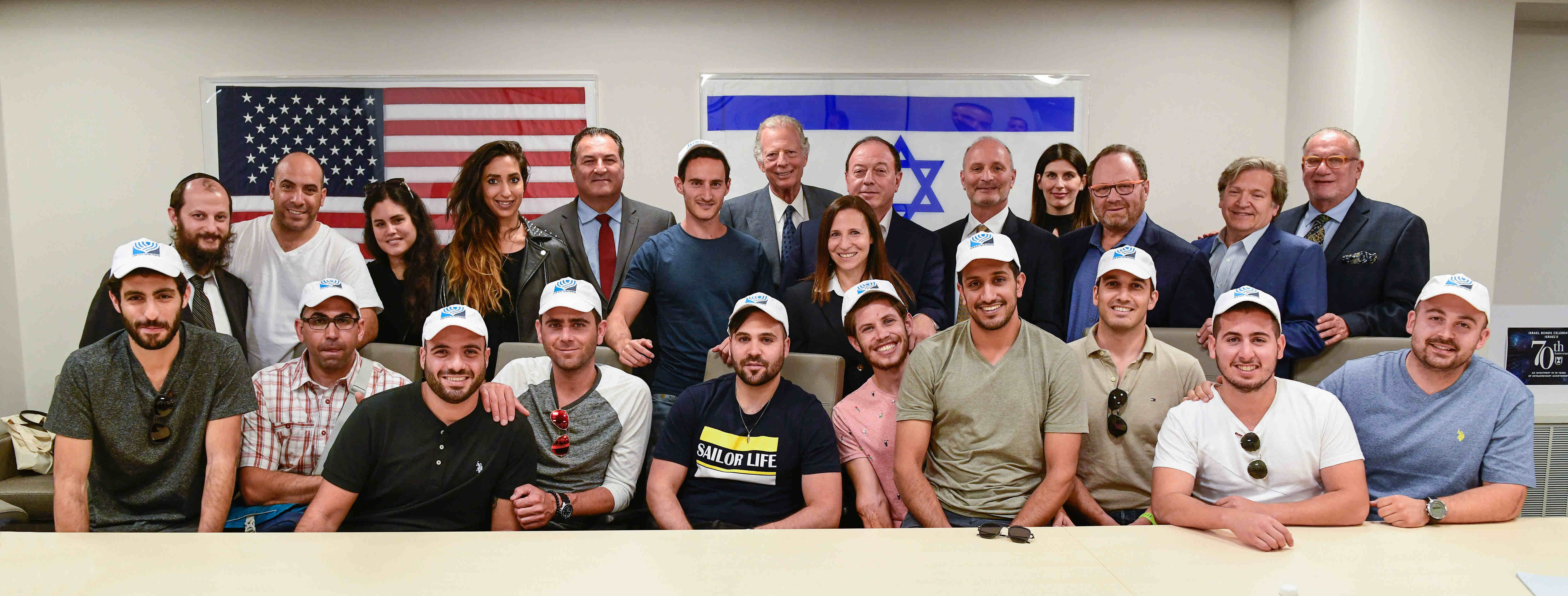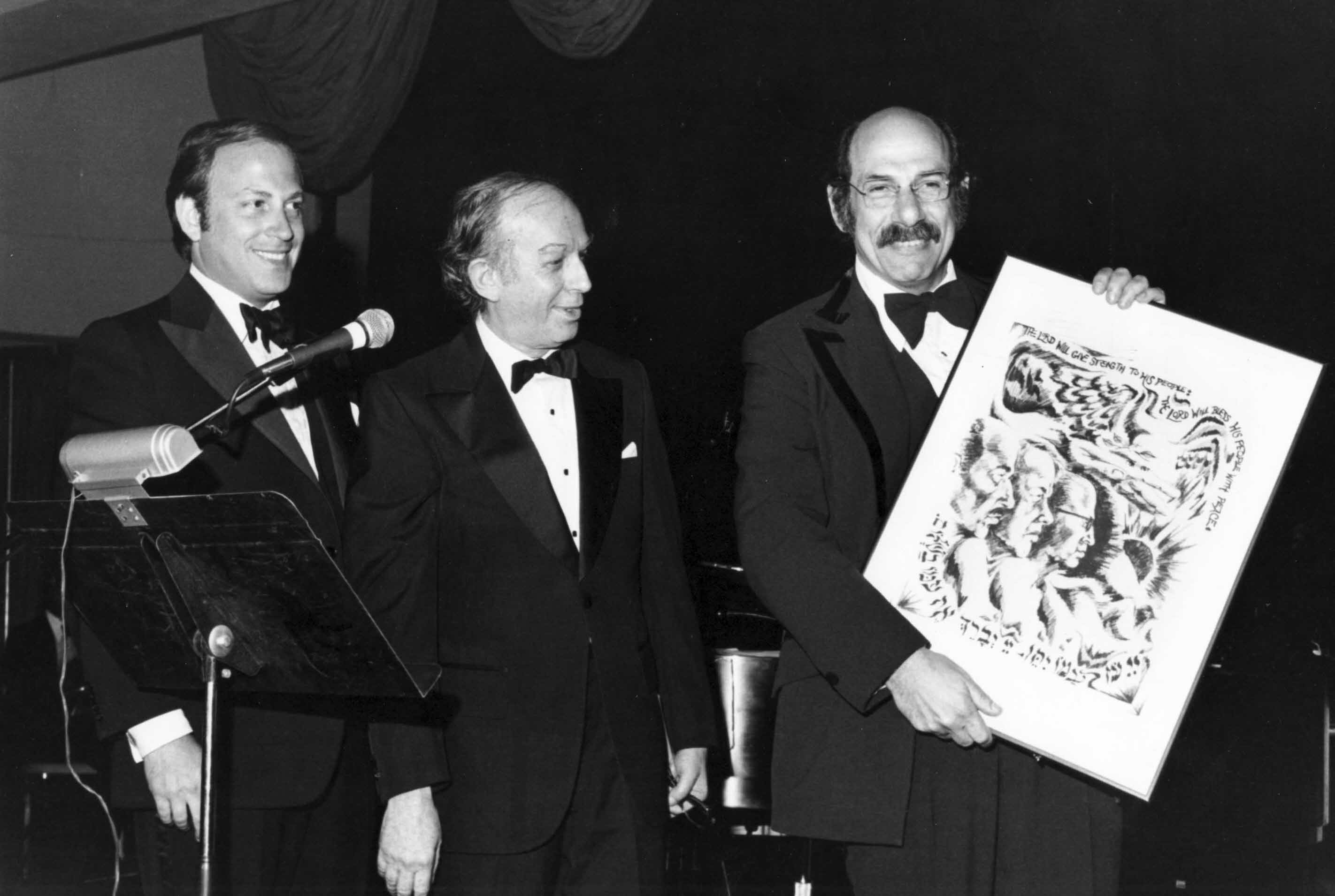 Celebrating Israel's Independence Day in May 2015, Ambassador Ido Aharoni accepted a symbolic check, highlighting worldwide Israel bond sales, from lay leaders and staff including Jason Schwartz, Shira Lewis, Richard L. Hirsch, Stuart Garawitz and Izzy Tapoohi. (Photo: Shahar Azran)