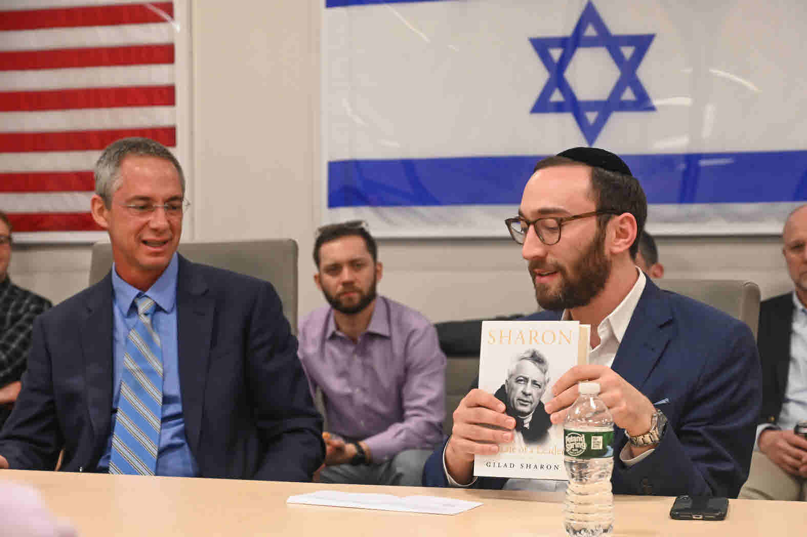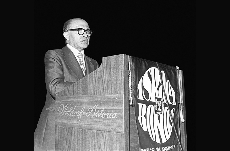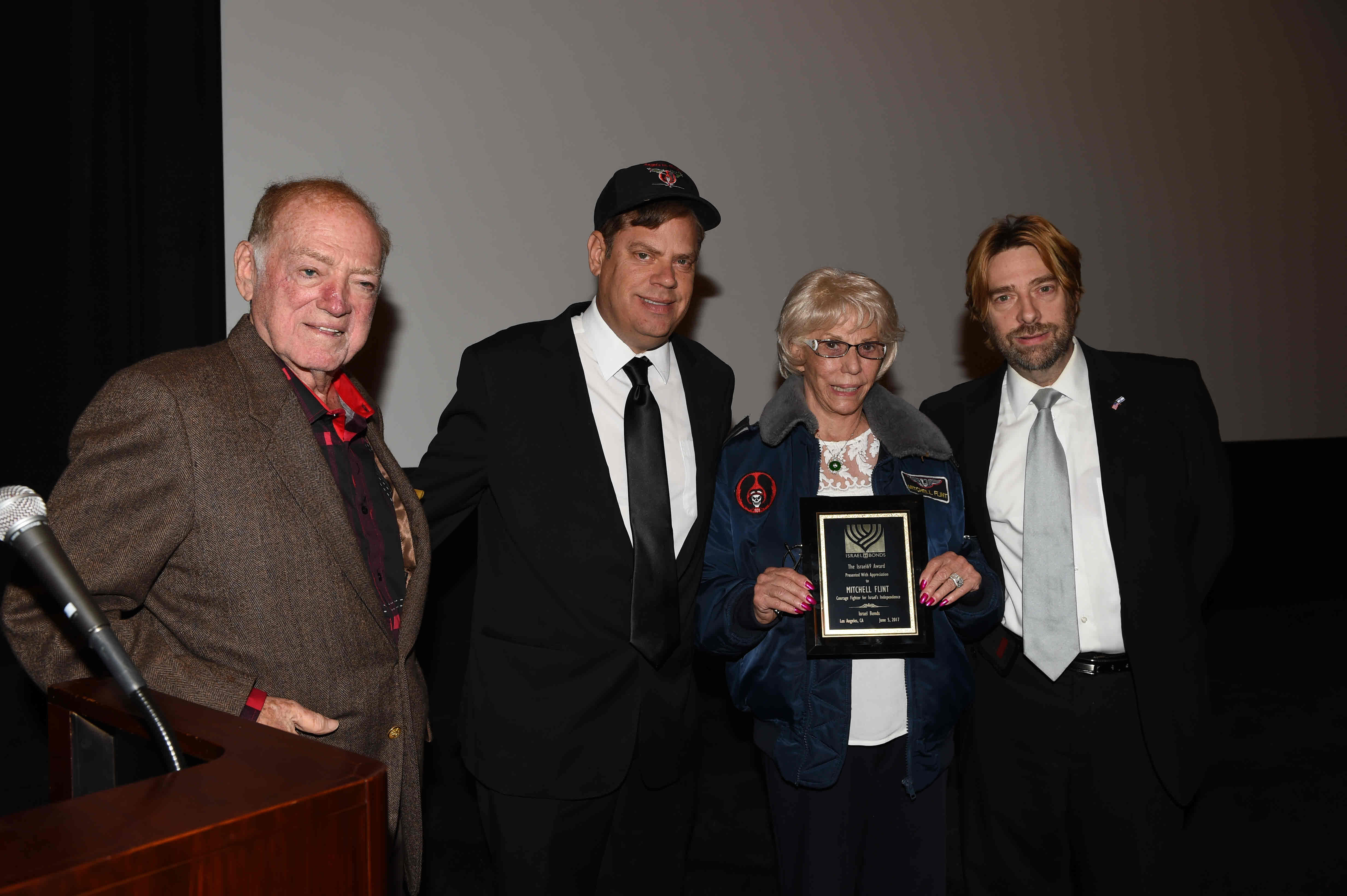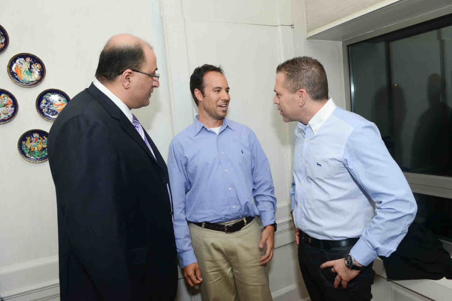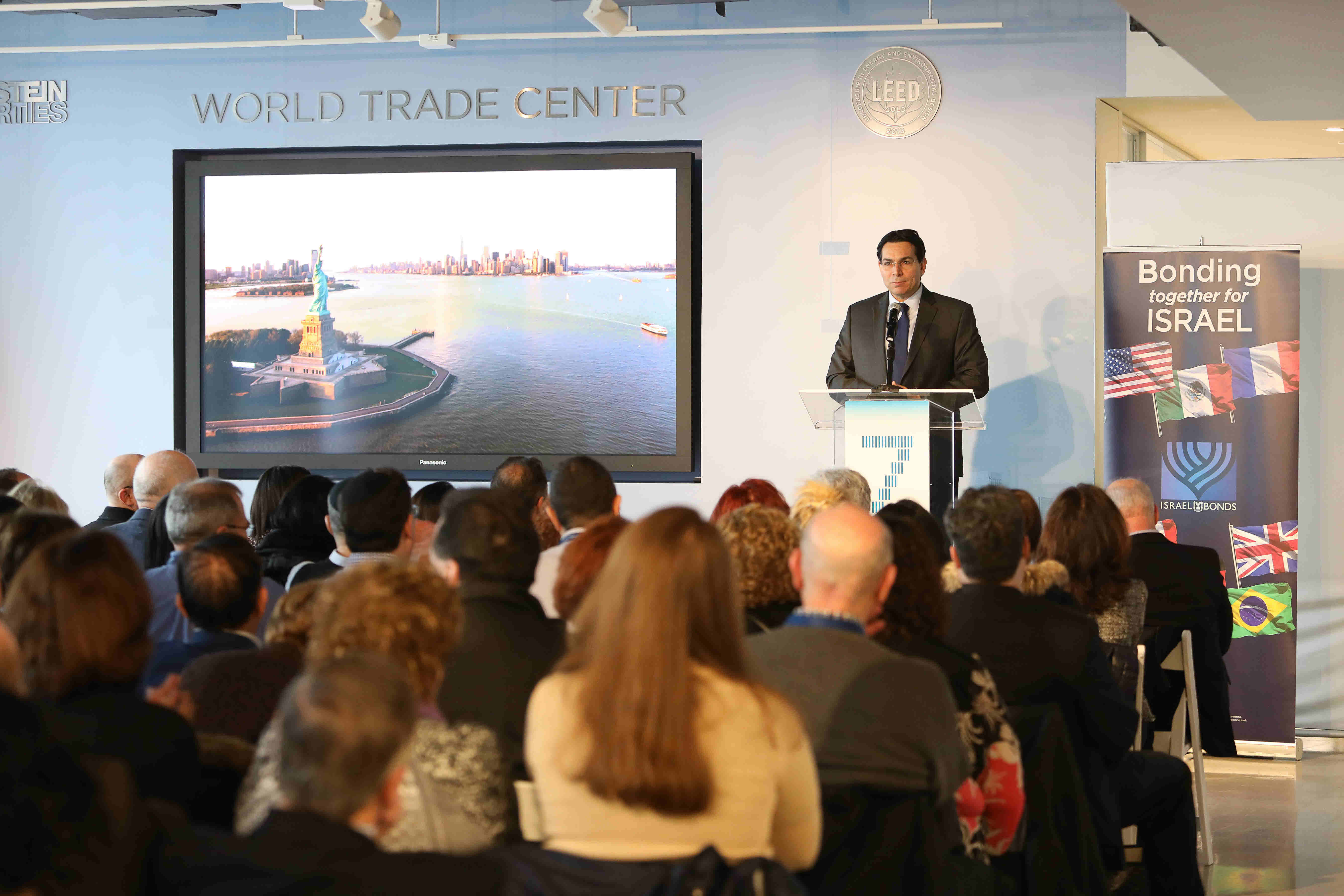 Celebrating Israel's Independence Day in May 2015, Ambassador Ido Aharoni accepted a symbolic check, highlighting worldwide Israel bond sales, from lay leaders and staff including Jason Schwartz, Shira Lewis, Richard L. Hirsch, Stuart Garawitz and Izzy Tapoohi. (Photo: Shahar Azran)